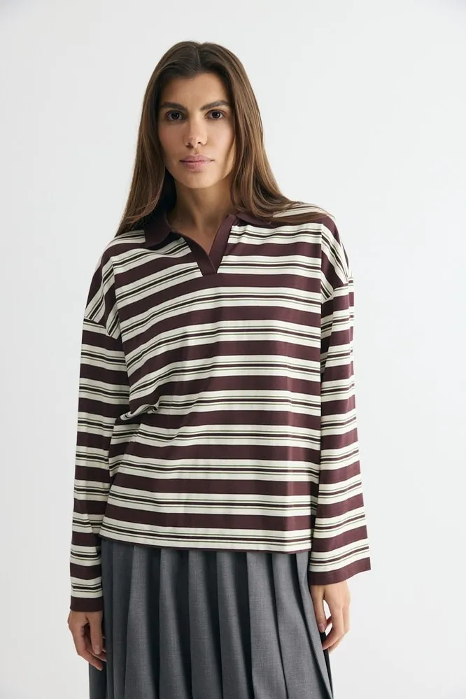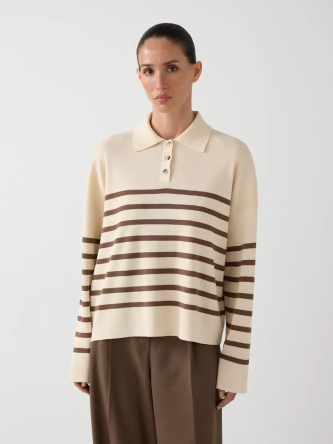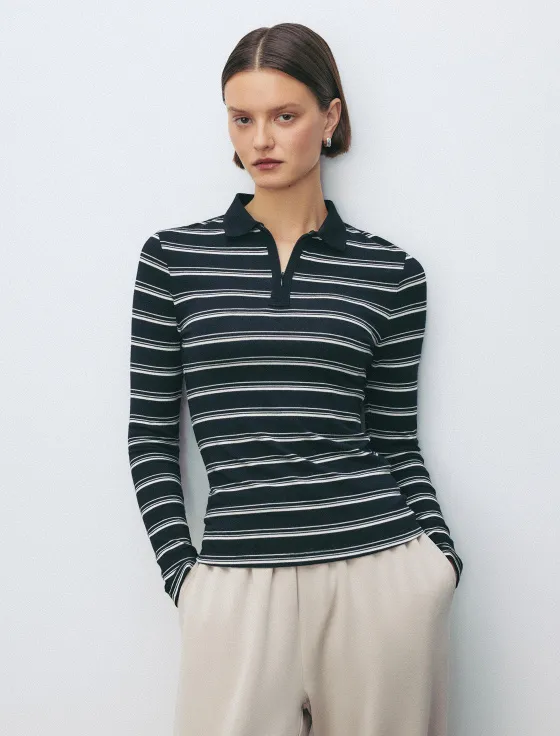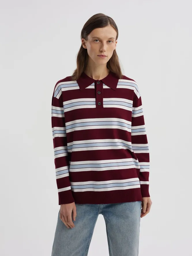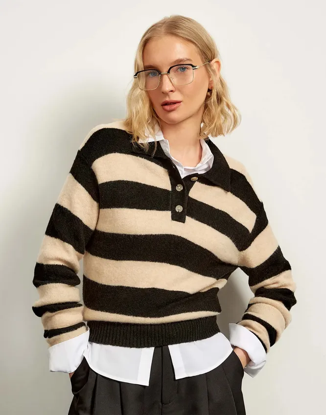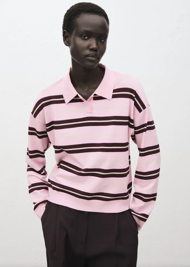 Синхронизация у фэшн-инфлюэнсеров, конечно, достигла потрясающего уровня. Как только они осваивают какой-то горячий тренд – тут же переодеваются разом, как по щелчку пальцев. В прошлом году все сходили с ума по одежде цвета сливочного масла, шапкам-морячкам и продолговатым сумкам-таксам. Осенью-2025 появился новый любимчик – лонгслив-поло в полоску.