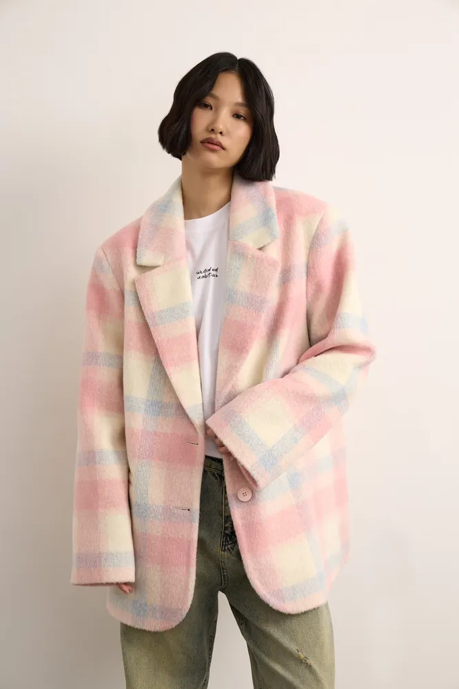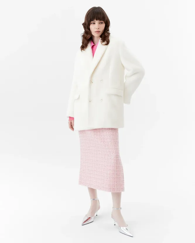 Хорошее пальто-жакет по форме напоминает мужской пиджак — с геометричными увеличенными подплечниками, прямого кроя. Строгие линии и четкая геометрия здесь необходимы! Можно выбрать двубортную или однобортную модель (большой роли это не играет), но всегда следи за тем, чтобы пальто-пиджак оставался для тебя в легком оверсайзе. «В легком», кстати, — ключевая деталь!