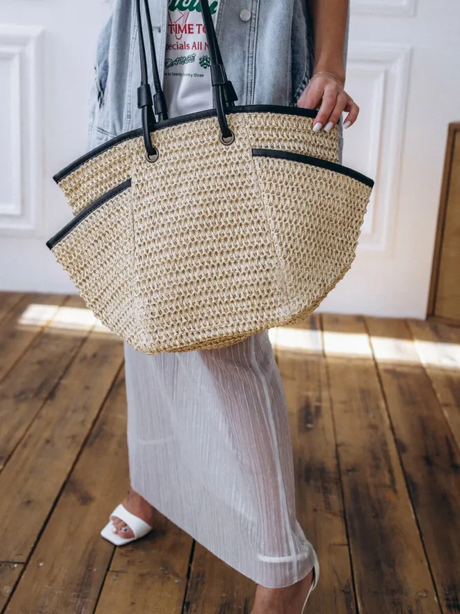 А что с городскими образами? Тут плетеные сумки тоже пригодятся. Конечно, к деловому костюму их не пристроить – как говорится, вещи из разных опер. Зато с базовыми белыми топами, свободными брюками (в том числе модными сегодня «аладдинами»), светлыми джинсами и рубашками в стиле коттеджкор плетеные сумки будут смотреться роскошно!