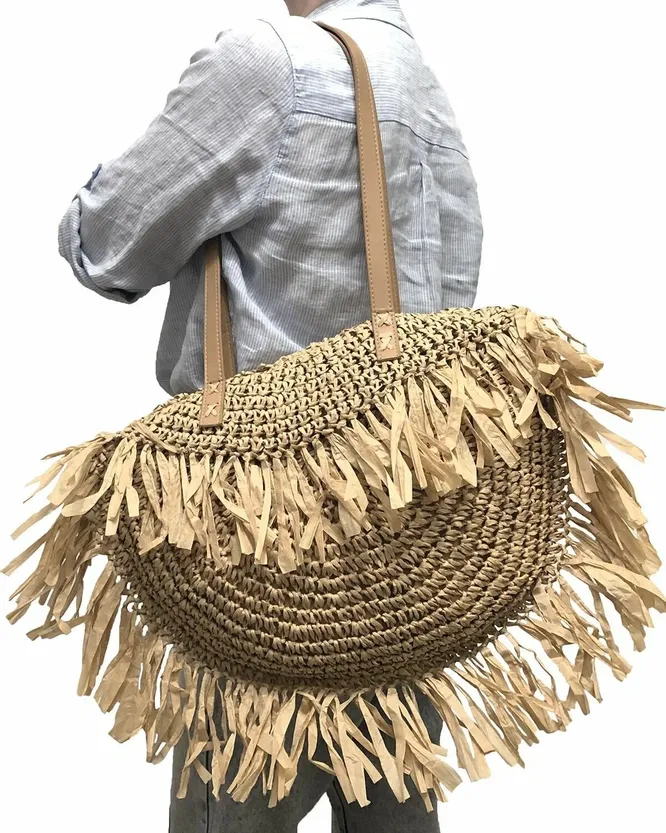 И даже в джинсовый образ этот отпускной аксессуар встроить несложно. Несмотря на то, что деним – визуально «тяжелый» материал, с сумками натуральных оттенков (а мы говорим именно о них) он мэтчится. Только не забудь добавить в аутфит одну-две вещи свободного кроя: это поддержит расслабленное настроение.