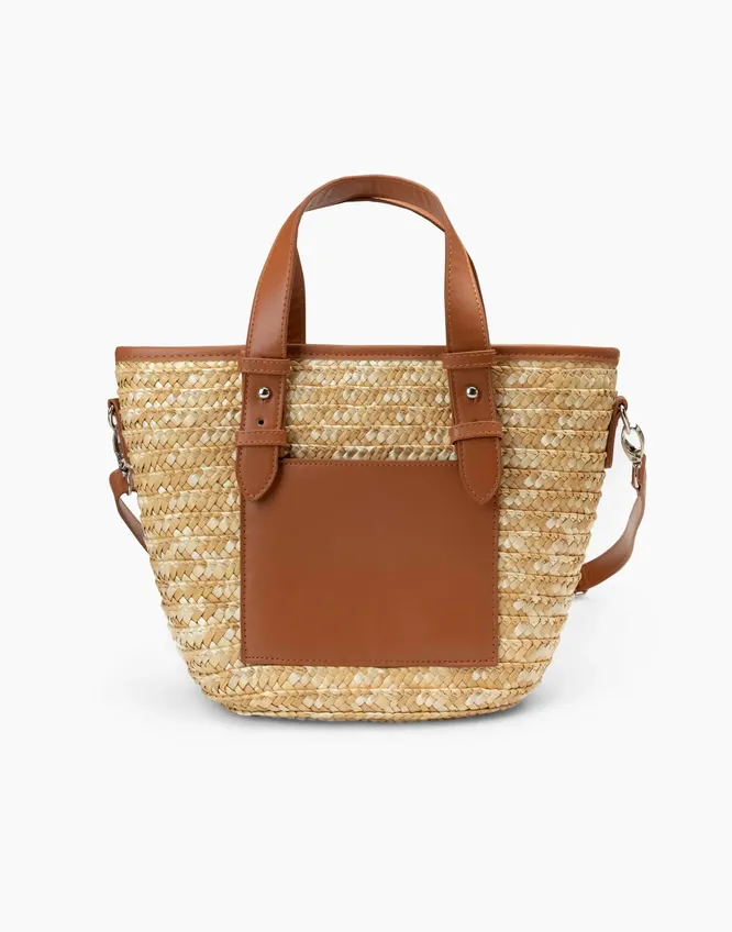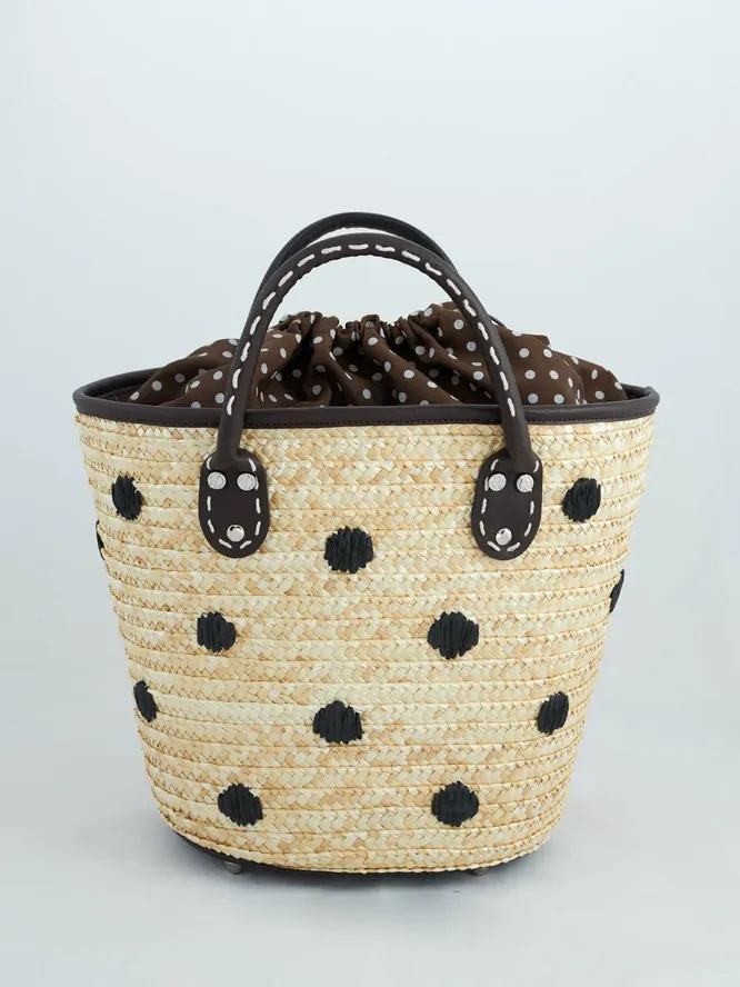 Особенно часто замечаем плетеные тоуты с кожаными вставками, например, кожаными ручками. Бери на карандаш – этих ребят можно будет носить ранней осенью с тренчем или той же джинсовкой. Кожаная фурнитура добавляет сумке «вес», адаптируя к более сложным look'ам – и давая нам повод выгулять недорогую, но эффектную обновку на месяц подольше.