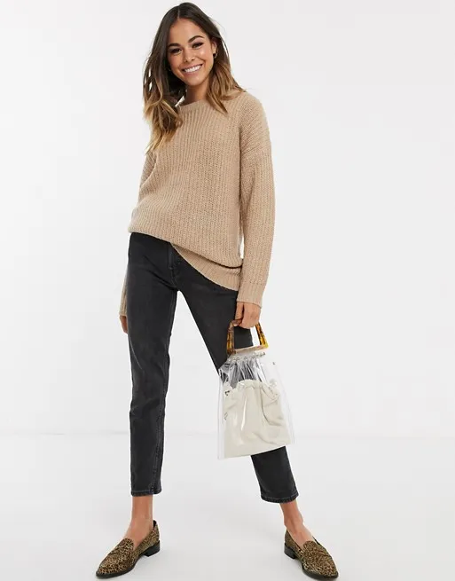 Многослойность и натуральные теплые материалы — твой ключ к успеху в холодное время года. Дополняй трикотажное платье-миди свободным джемпером в тон — лучше всего подойдут модели в бежевой гамме. Тотал-лук в светлых цветах определенно в тренде этой зимой, поэтому с таким сочетанием ты можешь чувствовать себя уверенно. Обувь можно подобрать как в тему наряду, так и поиграть на контрасте — все зависит от того, какого эффекта ты хочешь добиться.