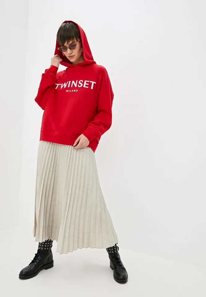 Не бойся сочетать вещи из разных стилей: воздушное платье-макси в цветочек будет интересно смотреться в тандеме с объемным худи красного цвета. Дополнят образ девочки-бунтарки грубые ботинки на толстой подошве и маленькая, аккуратная (да-да, опять соединяем противоположности) сумочка.