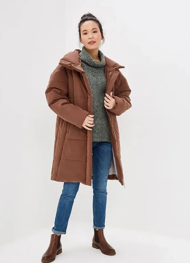 Свободные бесформенные силуэты особенно популярны в категории верхней одежды. В куртке оверсайз ты не только будешь выглядеть модно, но и сможешь надеть два-три слоя одежды под нее и не чувствовать при этом стеснения в движениях. Чтобы образ не получился слишком бесформенным, расставь акценты с помощью обуви и фактурной сумки.