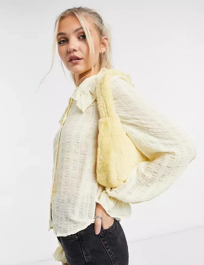 Блуза из жатой ткани добавит аутфиту фактурность. Носи ее с базовыми джинсами и белыми кроссовками.