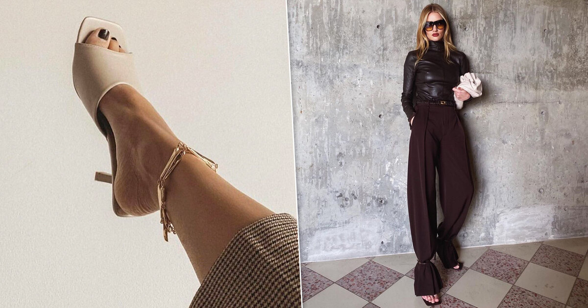 Из нулевых к нам возвращается мода на босоножки с ремешками, обхватывающими щиколотку. Если это тонкие кожаные шнурки, то их можно завязывать поверх брючин.