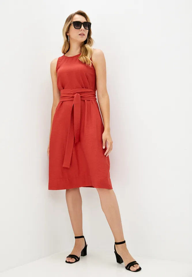 Если хочешь подчеркнуть фигуру, выбирай платье с акцентом на талии. Дополняй его босоножками на каблуке-рюмочке и маленькой сумкой через плечо.