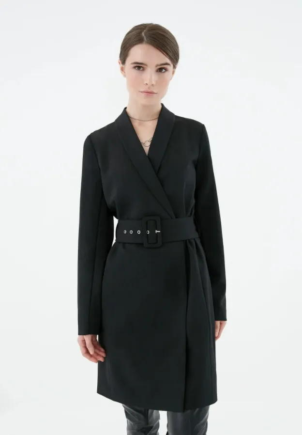 В похожем платье-жакете Меган в очередной раз нарушила королевский протокол, когда пришла на шоу «Гамильтон» в Лондоне, продемонстрировав публике оголенные стройные ноги. Модель идеально подходит для вечерних мероприятий и романтичных свиданий.