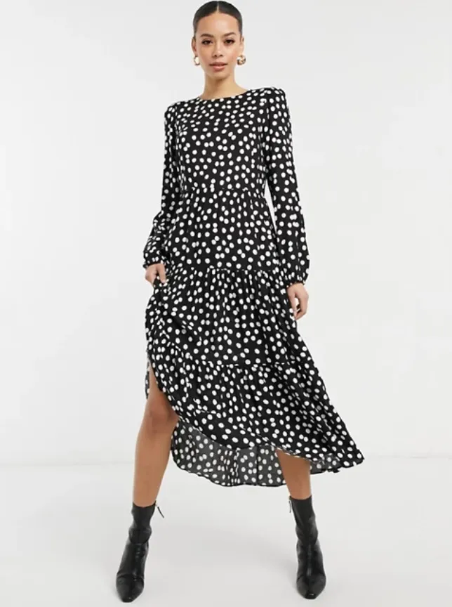 Летящее платье в горошек — идеальный вариант как для прогулки в парке, так и для светского мероприятия. Носи его в стиле Меган: с гладко собранными волосами и классическими лодочками.