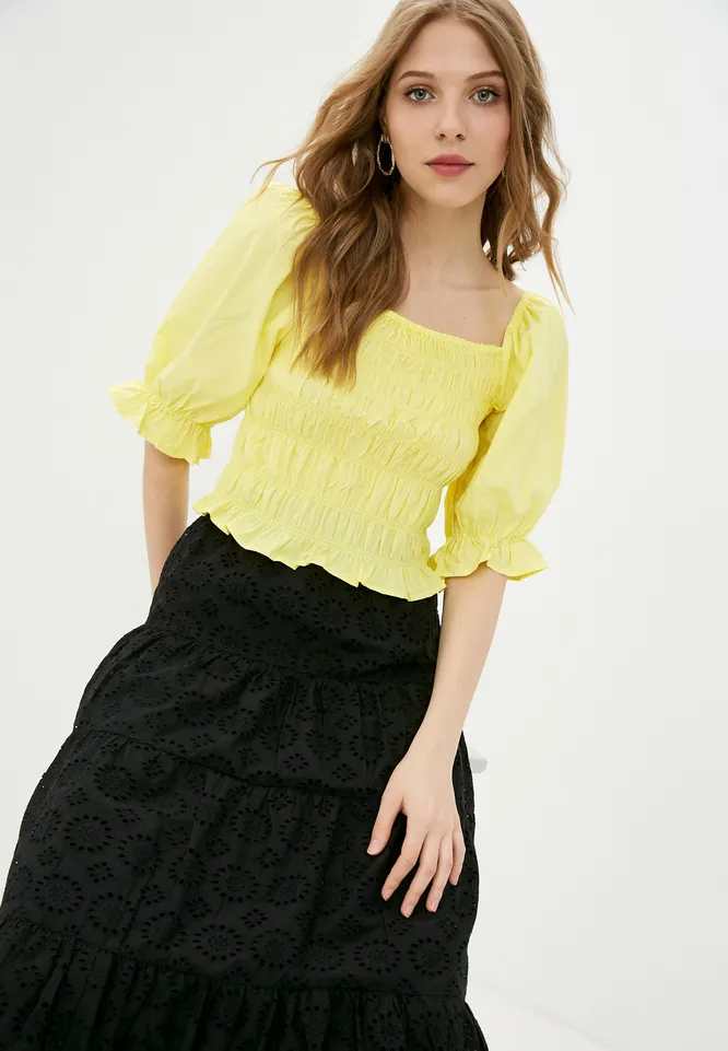 Топ с объемными рукавами станет отличной основой для романтичных летних образов. Присмотрись к моделям пастельных оттенков. Их можно носить с летящей юбкой миди, брюками палаццо или широкими шортами. Из аксессуаров выбирай декорированный ободок или пеструю повязку на голову, небольшую сумку-корзинку и пару украшений из цветного бисера.