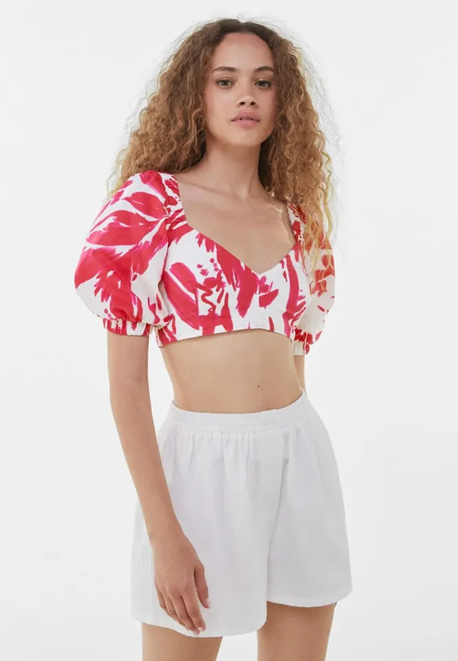 Если хочется чего-то яркого и пестрого, то стоит сделать выбор в пользу топов с цветочными или тропическими принтами. Тем, кто предпочитает более сдержанные и минималистичные вещи, подойдут однотонные топы спокойных оттенков из структурированных тканей.