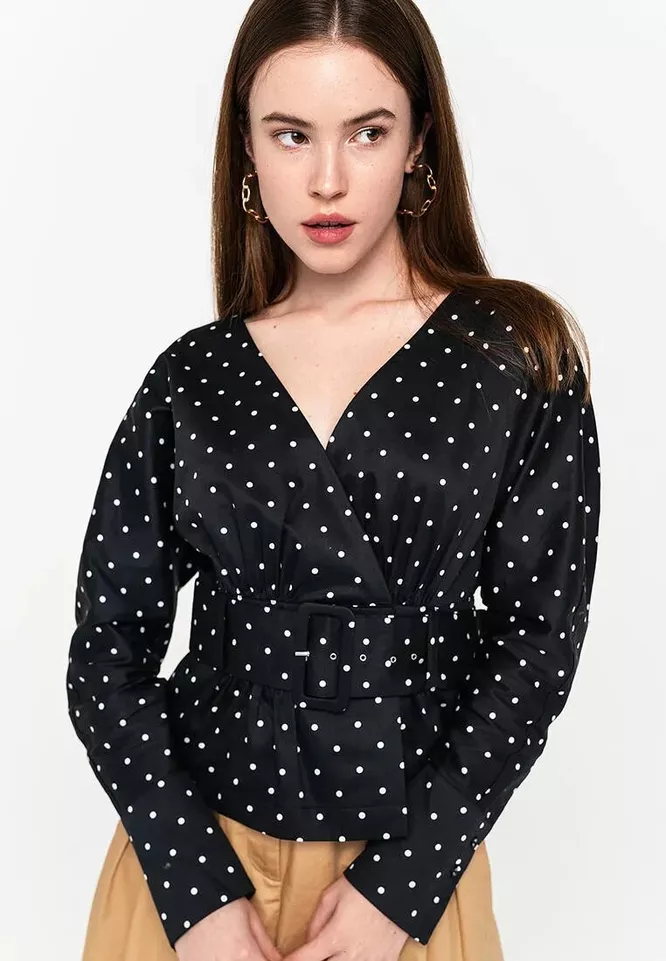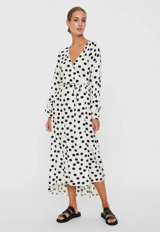 2. В одежде с гороховым рисунком делаем ставку на свободный силуэт и воздушные ткани.