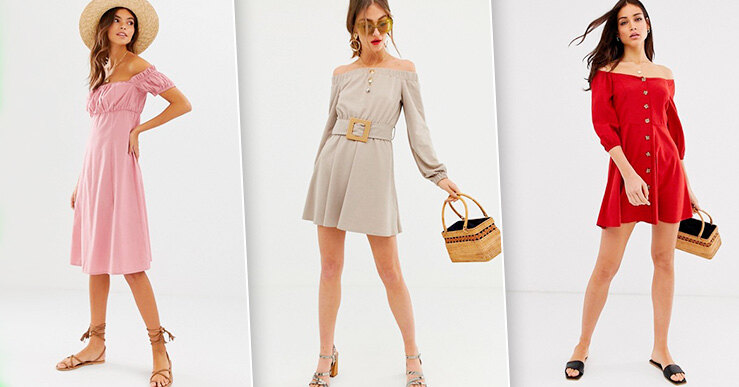 Акцент на шею: яркие и сексуальные платья с открытыми плечами на лето