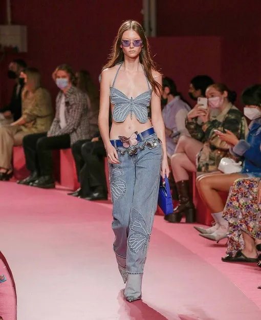 Теперь блестящие топы-бабочки носят все фэшэниста, и их популярность подтвердил показ Blumarine, где бабочки поселились на блузах, ремнях, босоножках, топах — везде. Не обязательно быть сверхпопулярной звездой или подругой дома Versace, чтобы заполучить вожделенную обновку: магазины масс-маркета постепенно налаживают производство новинки. Да, пока что в основном их можно найти в локальных бутиках в соцсетях, но тренд с каждым днем захватывает все большее количестве гардеробов.