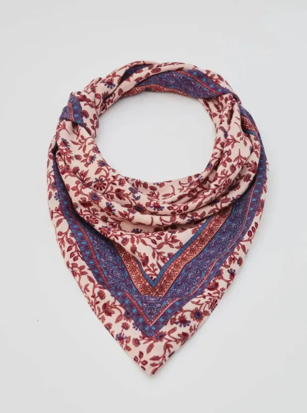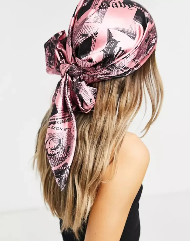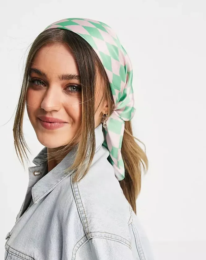 Поговорим о расцветках и принтах. Конечно, здесь каждой девушке в первую очередь нужно ориентироваться на свой гардероб и индивидуальный стиль, однако самыми трендовыми цветами сезона стали насыщенный зеленый, желтый, оранжевый, розовый. Если хочешь что-то более нейтральное, выбирай косынки в пастельной цветовой гамме. Что касается принтов, то советуем обратить внимание на модели с пестрыми платочными узорами, этническими и цветочными мотивами, а также на банданы и косынки с абстрактными геометрическими принтами.