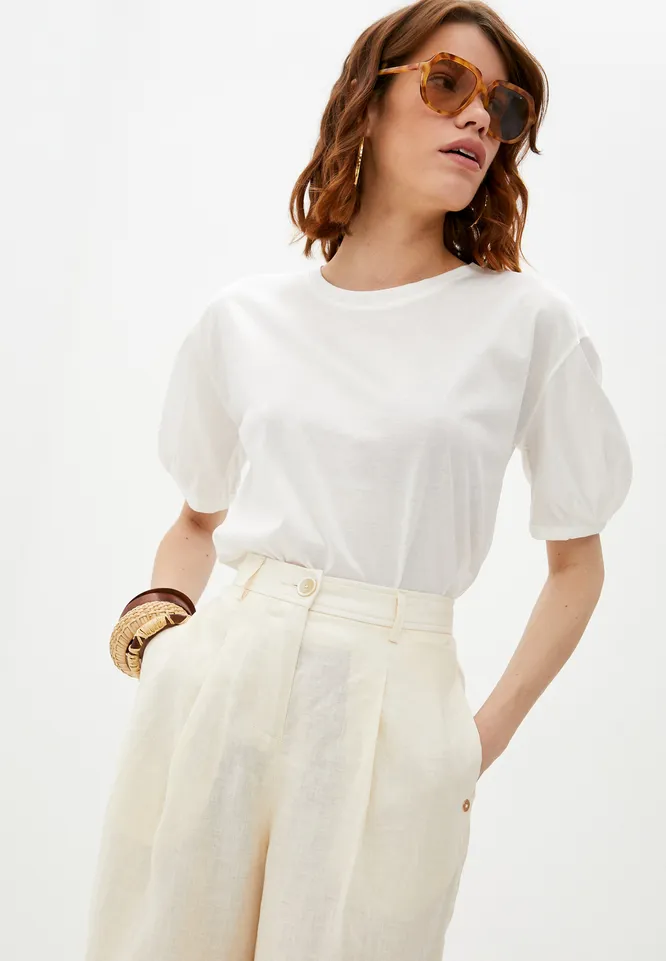 Летом делай ставку на модели полуприлегающего или свободного кроя – они позволят коже дышать, а тебе – весь день чувствовать себя комфортно. Еще один важный фактор при выборе идеальной футболки – материал. Летом как никогда актуальны натуральные ткани: лен, хлопок, легкий лиоцелл, конопляные и бамбуковые.