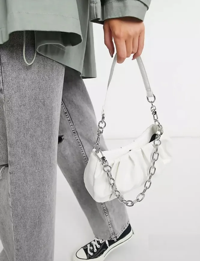 Второй — сумочка со сборками, декорированная серебристой цепочкой.