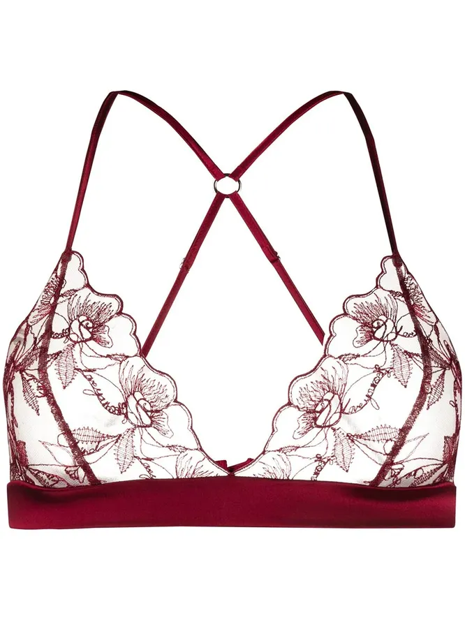 Нежный, воздушный комплект красного цвета поможет тебе создать кокетливое настроение в день всех влюбленных. Полупрозрачный топ, украшенный вышивкой, и кружевные стринги составят идеальный образ для яркой и чувственной натуры.