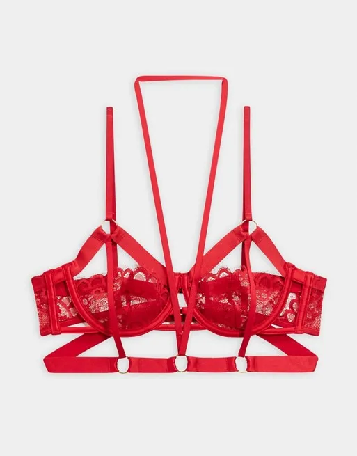 Комплект с бархатными ремешками подойдет для самых дерзких и страстных. Насыщенный красный цвет, кокетливые вырезы и мягкие перемычки, за которые так и хочется потянуть — беспроигрышное сочетание для Дня Святого Валентина.