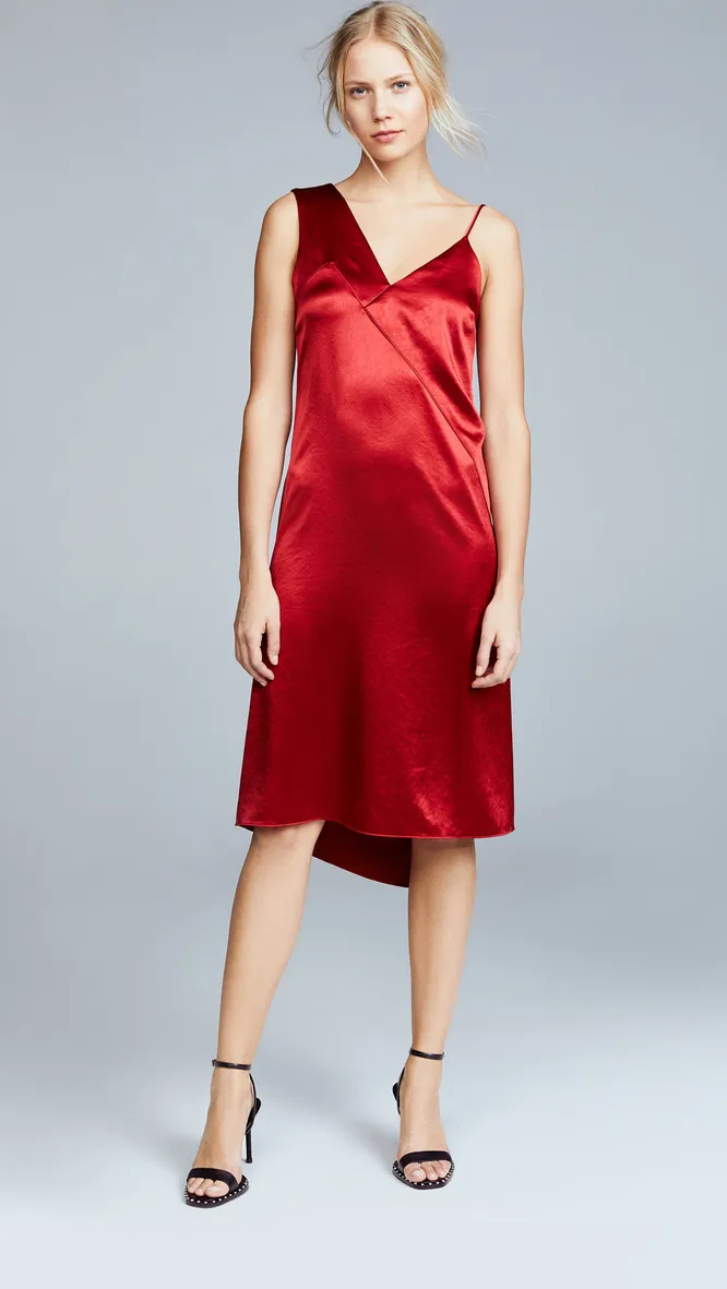 Не сдают позиций и платья-комбинации — шелковый наряд в бельевом стиле «подружится» с короткими ботильонами на толстом низком каблуке или низкой шпильке.