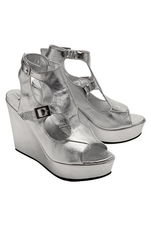 Такие «космические» босоножки ты можешь носить с одеждой не только черно-белой гаммы. Цвет металлик свяжет их с розовым или бежевым в единое модное целое.