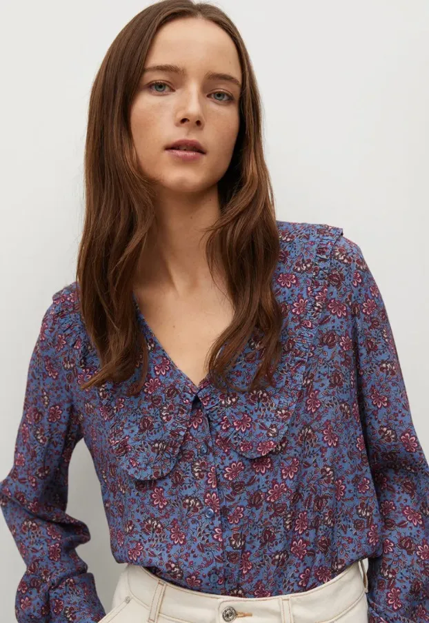 Блуза с буйством цветов и деталей поможет создать женственный и элегантный аутфит. Предлагаем носить ее с белыми, бордовыми или кремовыми брюками палаццо или атласными юбками миди.