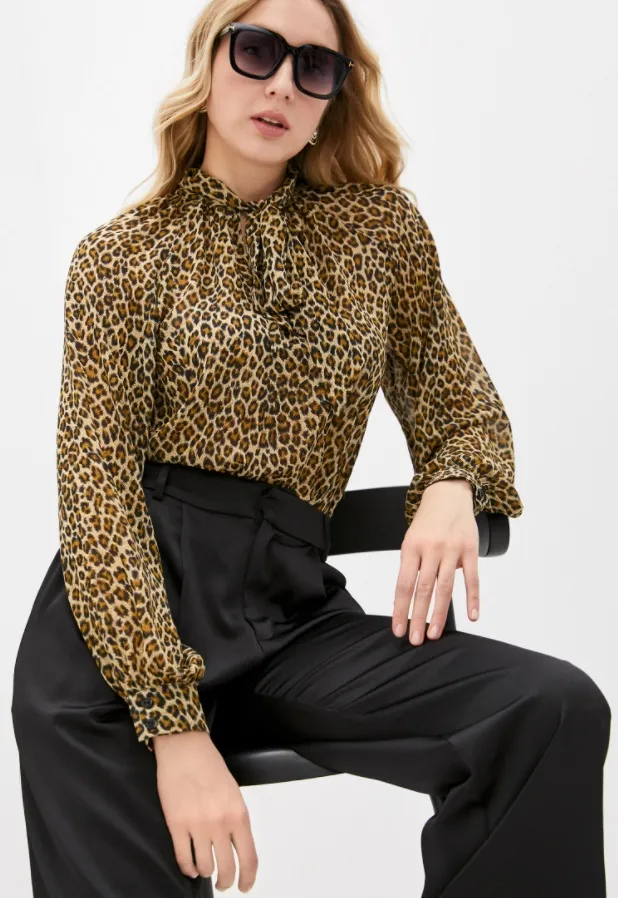 Воздушная леопардовая блуза станет удачной основой для роскошных вечерних аутфитов. Дополняй ее асимметричной плиссированной юбкой и туфлями-лодочками.