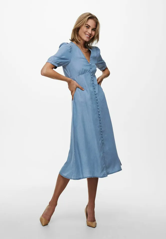Мы уже не раз говорили о том, что джинсовые вещи сейчас на пике популярности. Предлагаем легкое летнее платье из тенима на пуговицах. Носи его со светлыми кроссовками или сандалиями, небольшой сумкой кросс-боди.