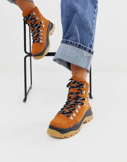 С этими ботинками не страшна никакая погода: в них безопасно передвигаться по льду и нетрудно преодолевать сугробы. Советуем носить их с синими джинсами-мом и объемным пуховиком до середины бедра.