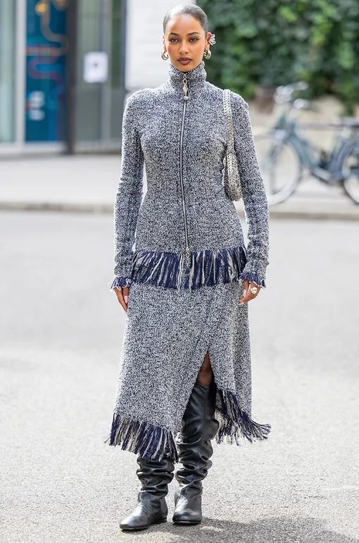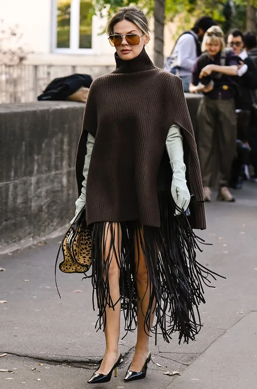 И теперь самая модная вещь — бохо-пуловер. Инфлюенсеры уже активно носили подобные вещи на Неделях моды, а значит мы можем вдохновиться стритстайлом.