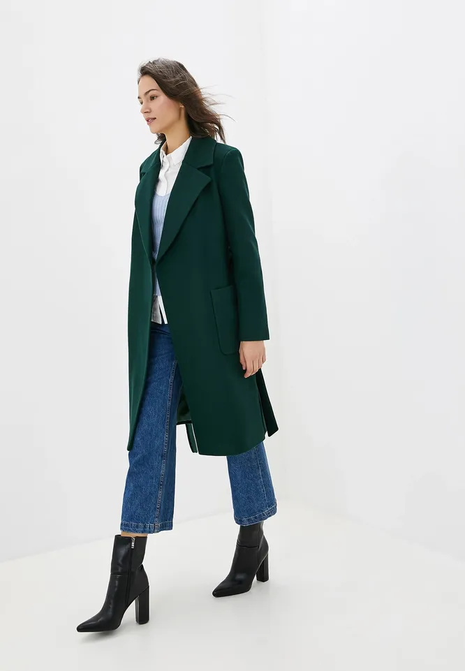 Весна — сезон пальто, поэтому отличной идеей станет пополнить гардероб стильной зеленой моделью из шерстяного драпа. Благодаря классическому крою оно будет гармонично смотреться как с повседневными джинсами, так и с костюмами и платьями, а завязывающийся пояс поможет подчеркнуть талию и добавить образу женственности.
