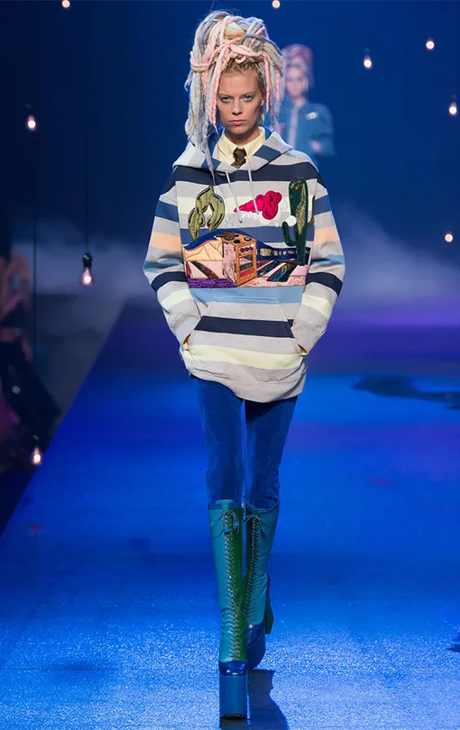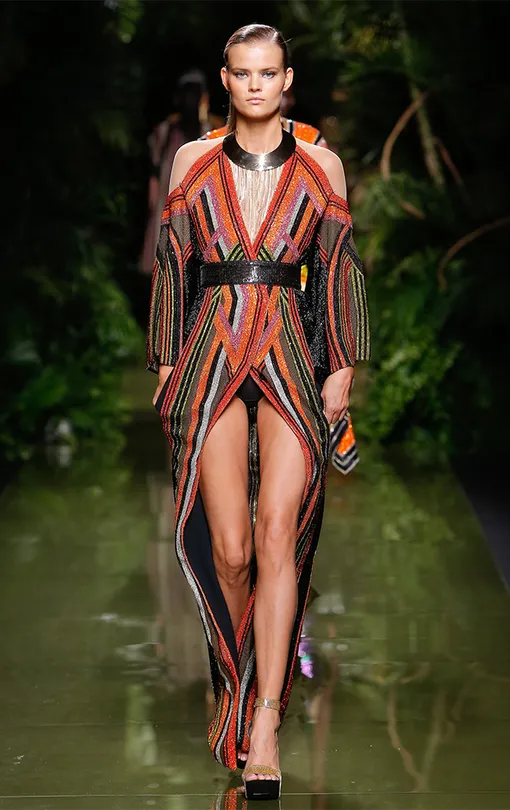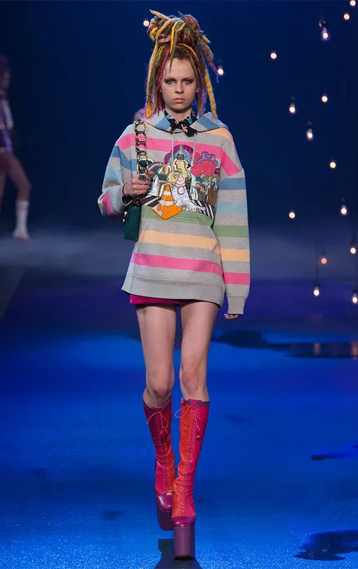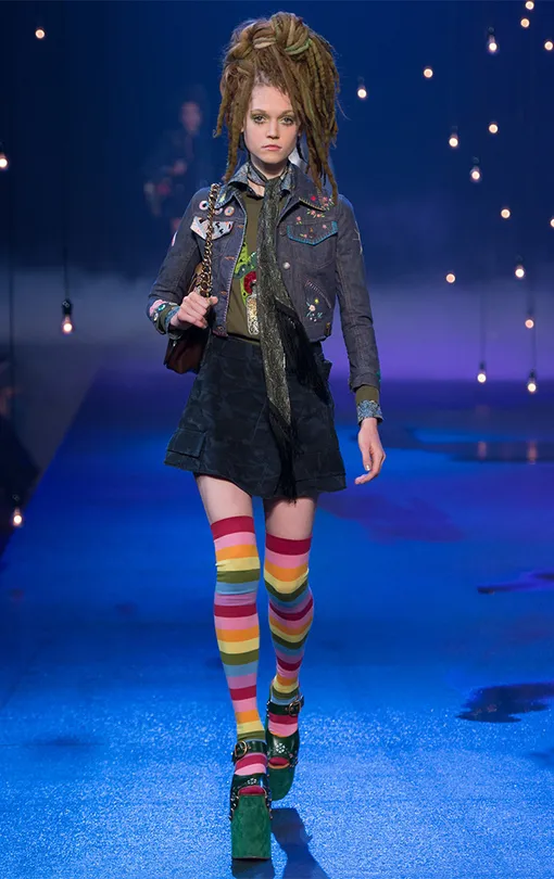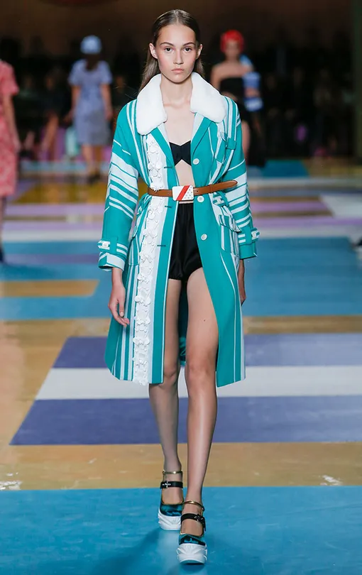 Меня всегда очень привлекала полоска в духе Sonia Rykiel — ну та самая, тоненькая и графичная, непременно перемежающаяся черным цветом. Однако в этом сезоне, помимо знаменитого трикотажного модного дома, цветной полоской нас порадовали Miu Miu, Red Valentino и другие марки. Марк Джейкобс выпустил на подиум моделей в забавных полосатых гольфах, а шикарные наряды у Balmain украшает причудливый геометричный принт, в котором неизменно присутствует цветная полоска.