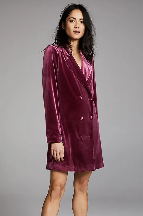 В платье-пиджаке из бархата ты будешь выглядеть очень женственно и стильно! Носи его с нюдовыми босоножками или классическими «лодочками». В таком виде не стыдно появиться на вечеринке или коктейле.