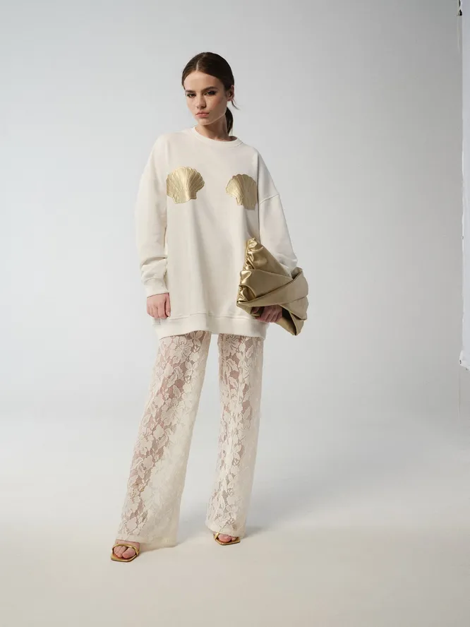 Рюши и прозрачные летящие платья с блузами — основа основ, если ты всерьез влюбилась в Mermaidcore. С балетками такие комбо буду выглядеть невероятно мило и эффектно, а когда русалочья эстетика тебе наскучит, просто замени обувь на нейтральные казаки или кеды. А потом — кто знает — мода циклична!