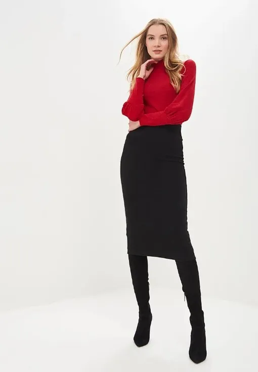 Классический и довольно универсальный вариант. Такую юбку можно носить и в офис, и на свидания, и на модные вечеринки. Модель из эластичного трикотажа идеально облегает фигуру, подчеркивая формы. Высокая посадка, пояс-резинка, длина чуть выше щиколотки. Если хочешь казаться выше и стройнее, носи юбку с обтягивающей водолазкой и ботфортами на каблуке.