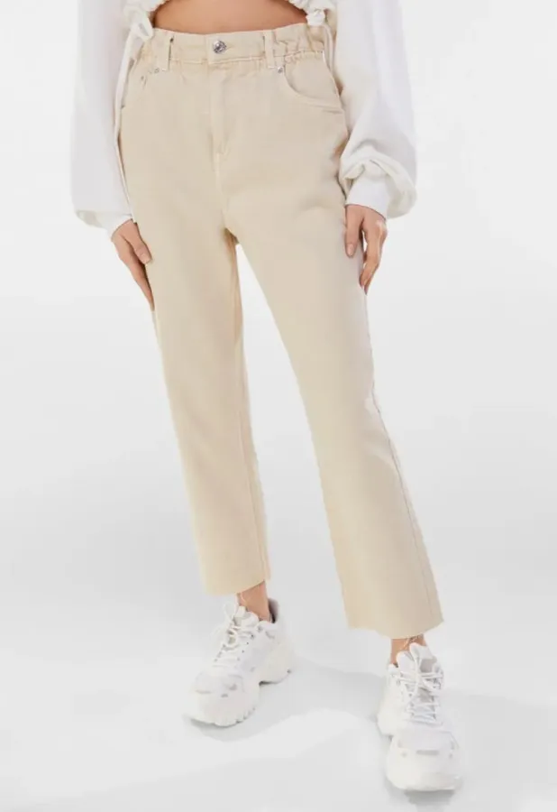 Универсальный вариант на каждый день — укороченные расклешенные джинсы paperbag. Одинаково хорошо смотрятся и с женственными блузами, и с худи, и с базовыми футболками.