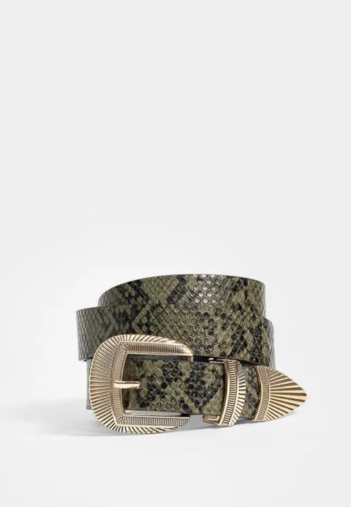 Даже одна маленькая деталь способна полностью преобразить наряд. Этот стильный яркий ремень с тиснением под рептилию послужит отличным акцентом и задаст настроение образу. Носи его с джинсами скинни, рубашкой, заправленной за пояс, и модными казаками.