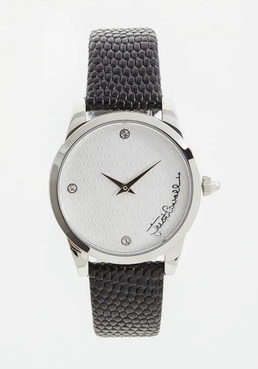 Если хочешь внести маленькую изюминку в свой образ, выбирай стильные часы с чёрным лакированным ремешком, декорированным под рептилию. Они придадут твоему образу особый шарм и элегантность.