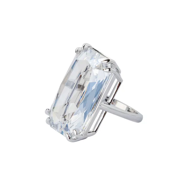 Габариты камня в этом украшении по-настоящему впечатляют. Несмотря на внушительные размеры, кольцо смотрится довольно деликатно. Носить его можно, даже комбинируя с другими изделиями, в том числе кольцами. За счет прозрачности камня и строгой огранки его легко получится сочетать с другими украшениями.