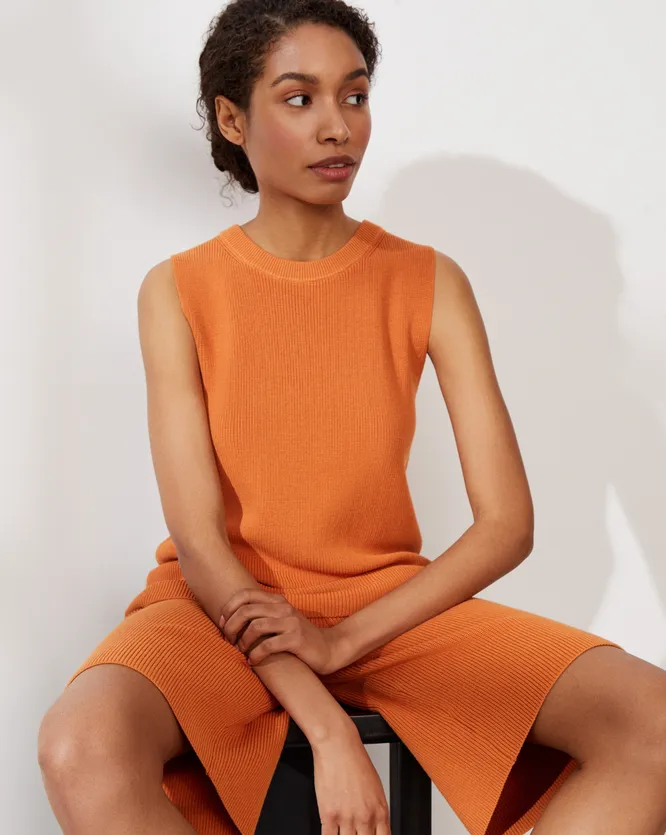Если базовые оттенки тебя не привлекают, обрати внимание на ярко-оранжевый топ. Он легко сочетается как с нейтральными цветами, так и с более яркими.