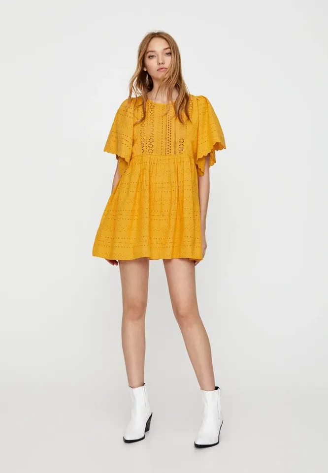 Яркое мини солнечного желтого оттенка поможет тебе поднять настроение. Модель свободно сидит на фигуре, обеспечивая легкость передвижения, и позволяет телу дышать. Идеальный вариант на жару!
