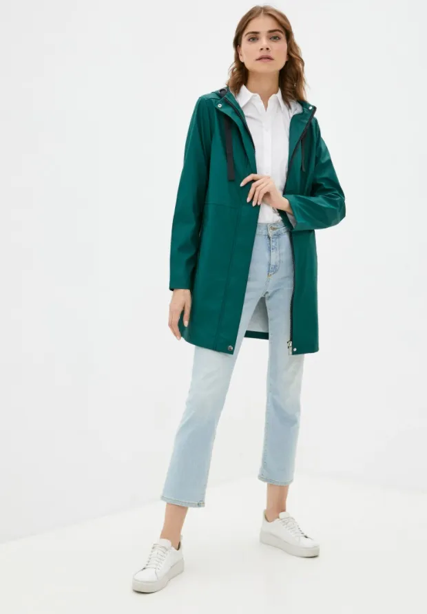 Стильная и удобная куртка-дождевик из влагостойкого материала подойдет тем, кто предпочитает современный casual-стиль. Невозможно не влюбиться в этот изумрудный цвет, который органично вписывается в осенний гардероб. К дождевику подойдут любые джинсы, трикотажные джоггеры, нейтральные брюки, а также кроссовки, ботинки и ботильоны на плоском ходу.