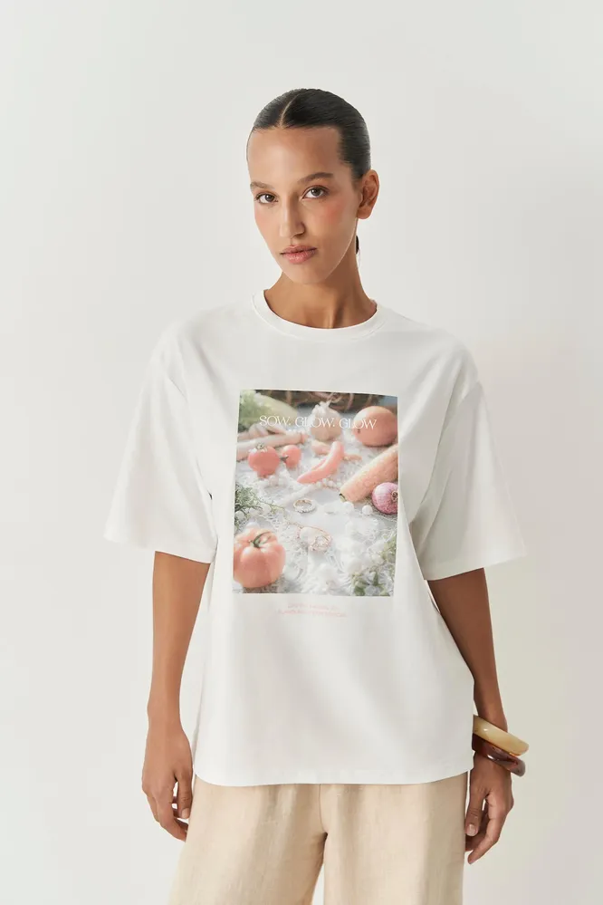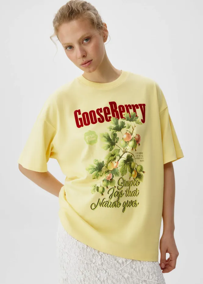 В сезоне-2025 акутальны футболки с принтом под винтаж: отрисованные как будто от руки, милые, в основном пастельные – никакого вам тут гранжа! Нам лично особенно нравятся принты с печеньем и молоком, но позицию суперхита все-таки забирают принты с лимонами и перцем. Почему, кстати, было бы интересно однажды узнать.