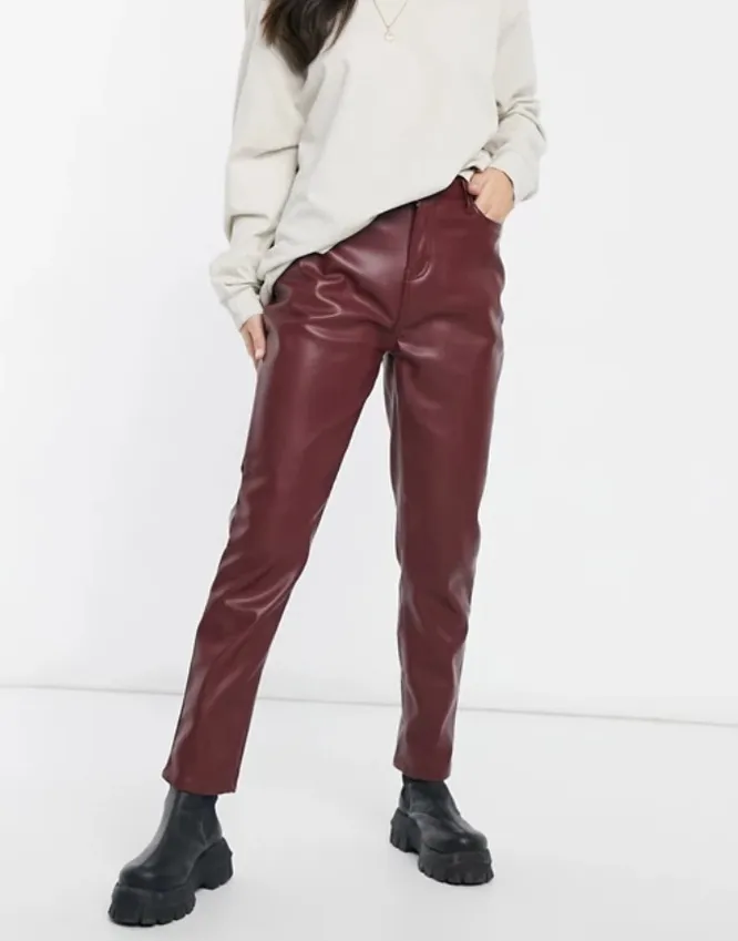Лаконичные кожаные брюки — отличная замена классическим моделям из костюмной ткани. Выбирай пару простого кроя без лишних декоративных элементов и носи ее с минималистичным верхом и нейтральными аксессуарами.