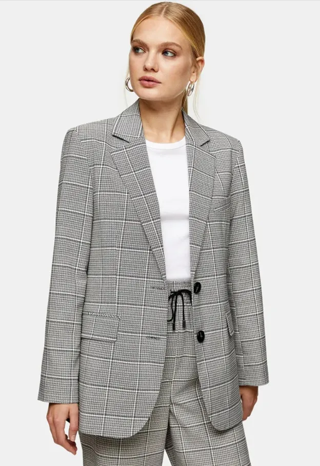 Вместо куцых приталенных жакетов носи современные модели. Обрати внимание на клетчатый пиджак прямого, слегка свободного кроя, который идеально впишется как в деловые, так и в повседневные образы.