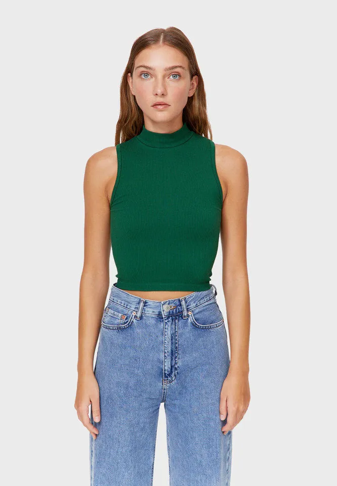 Если хочешь добавить в образ яркий акцент, выбирай топ в трендовом зеленом цвете.