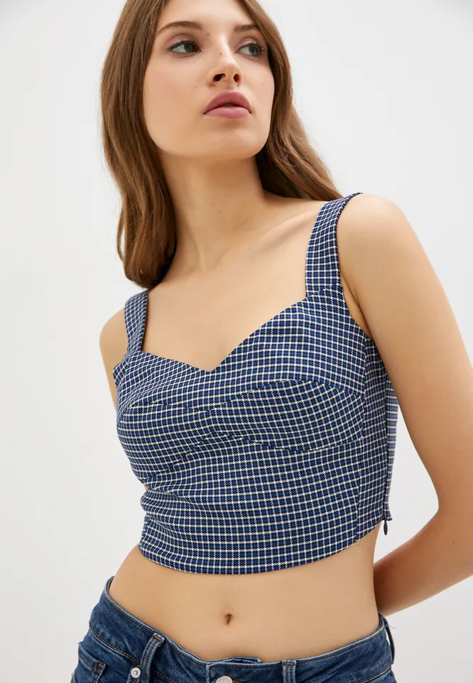 Хит сезона — топ в корсетном стиле. Отлично смотрится с брюками, шортами и юбками на высокой посадке.