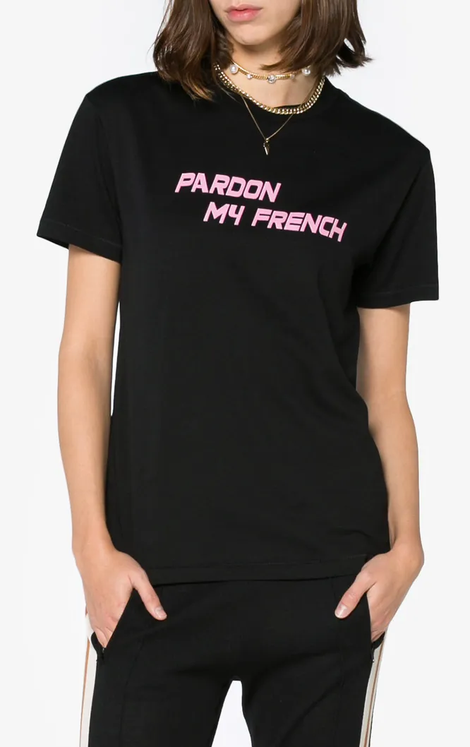 Известное выражение «Извиняюсь за свой французский» на футболке подойдет тем, кому порой трудно совладать со своими эмоциями.