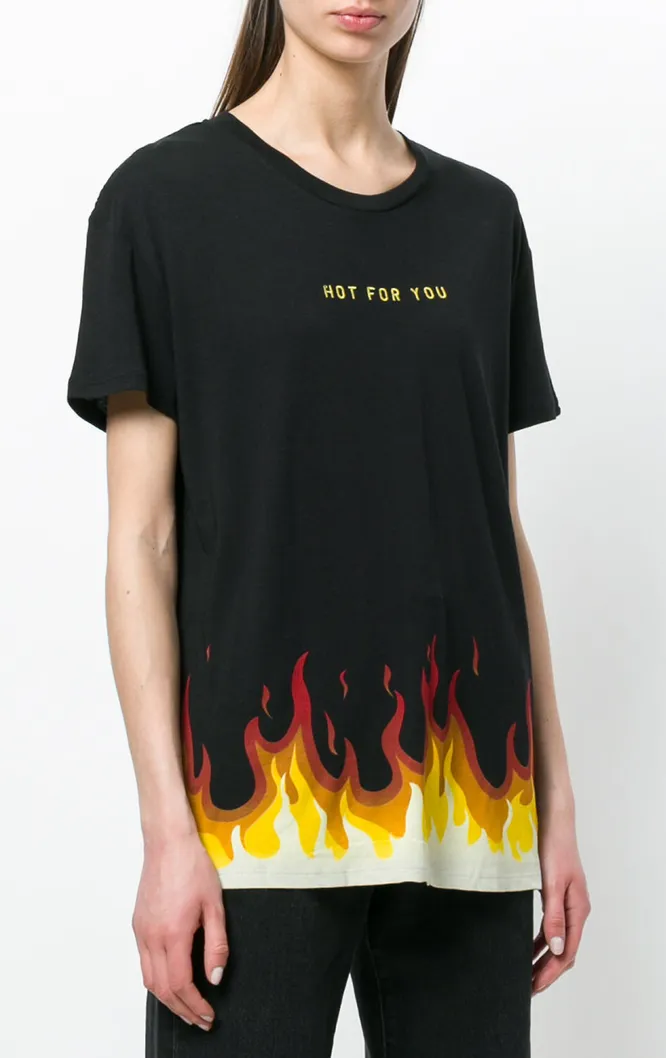 Для самых «горячих» девушек — эта пылающая футболка. Нам кажется, что в такой точно стоит отправиться на модную вечеринку. Надень ее в комплекте с джинсами и модными кроссовками.