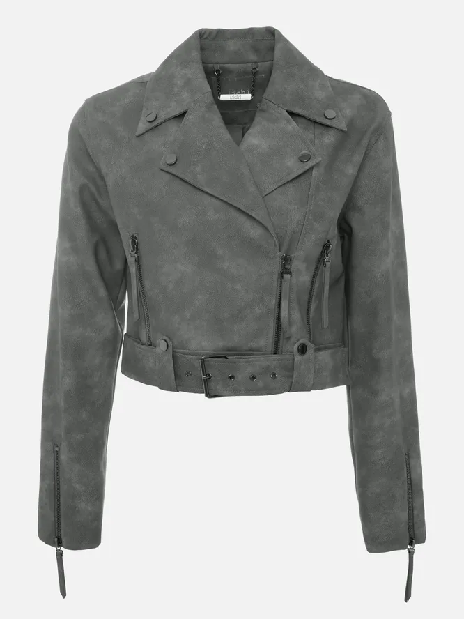 Причем «короче» — тоже понятие растяжимое. Если кожанка заканчивается, к примеру, прямо под грудью, то это не наш вариант — такие модели как раз выглядят несоразмерно реальной фигуре и хороши для сценических или специальных ститстайл-образов. Достаточно просто подобрать куртку, доходящую до уровня бедер или немного выше, чтобы достичь нужного эффекта.
